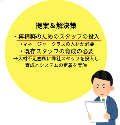 ・弊社の社員がシステム定着まで、日々雇用のスタッフとして定期的に勤務しサポート